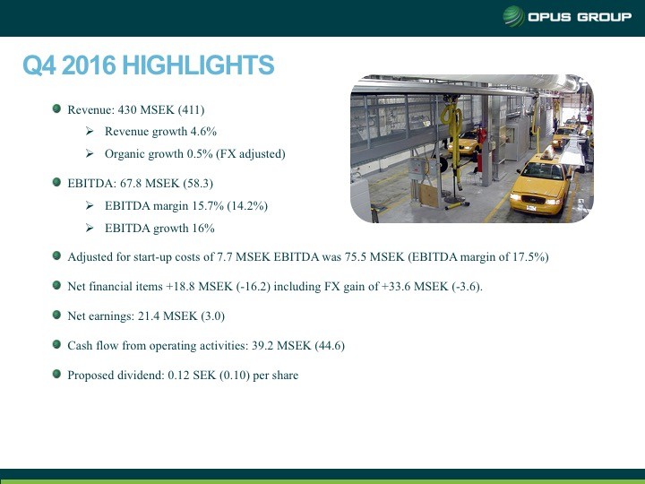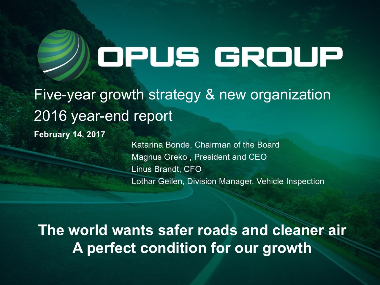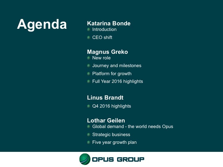 Opus presentation of new five-year growth strategy, new organization and 2016 year-end report.